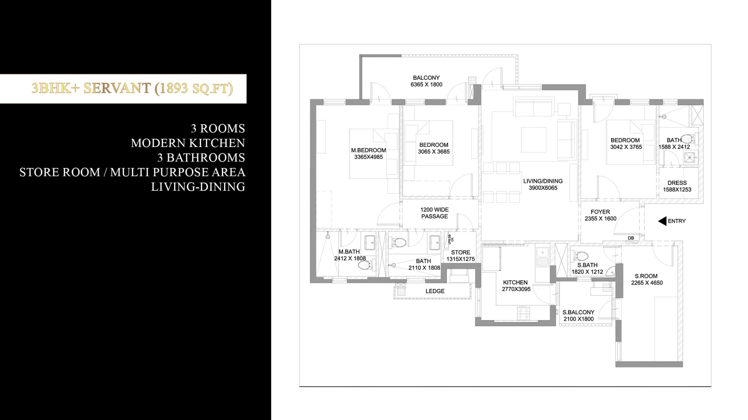 Ireo Corridors Floor Plan - 3 Bhk - 1893 Sq.ft.