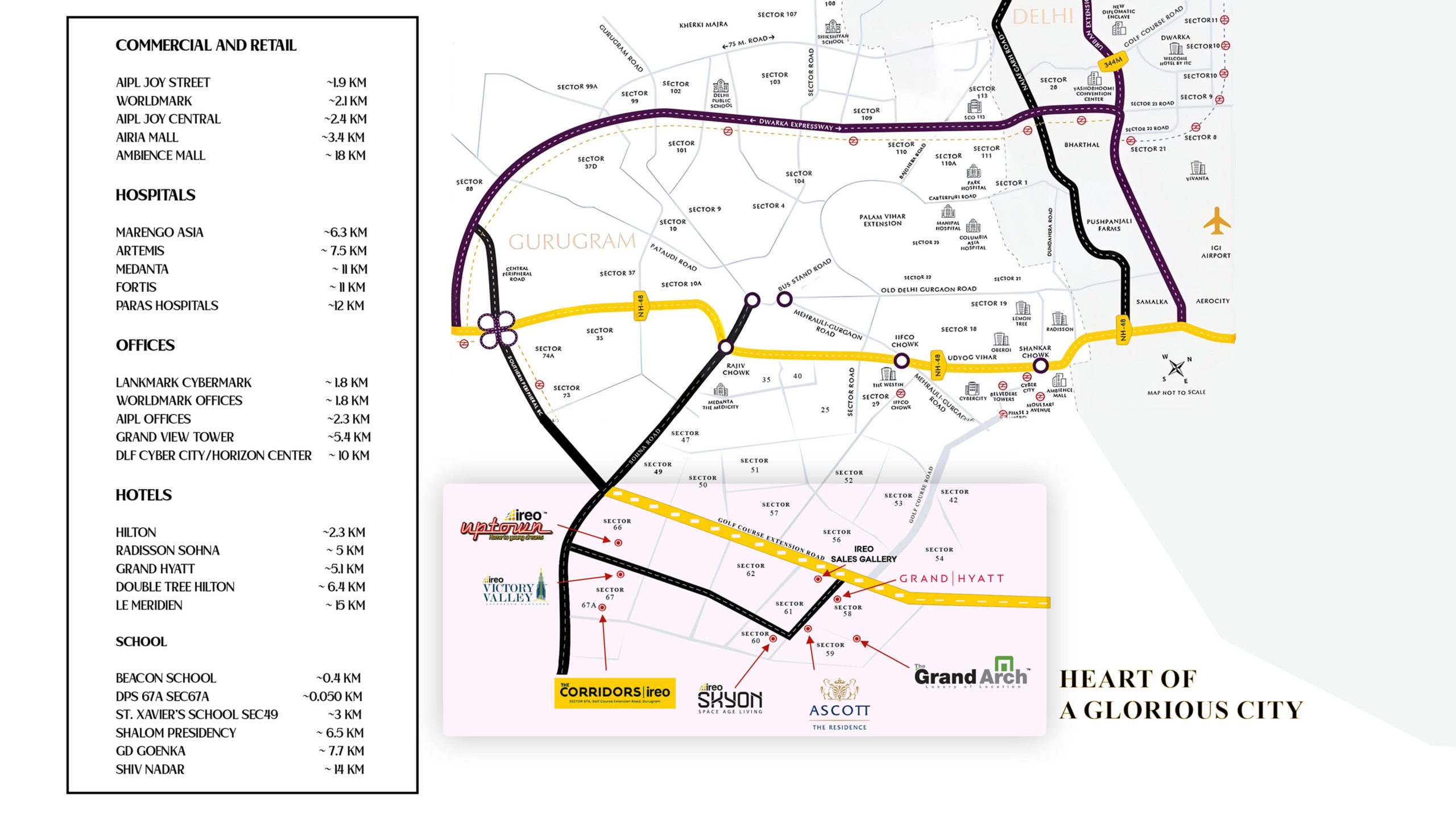 Situated near the Golf Course Extension Road, the project offers strategic access to major hubs: