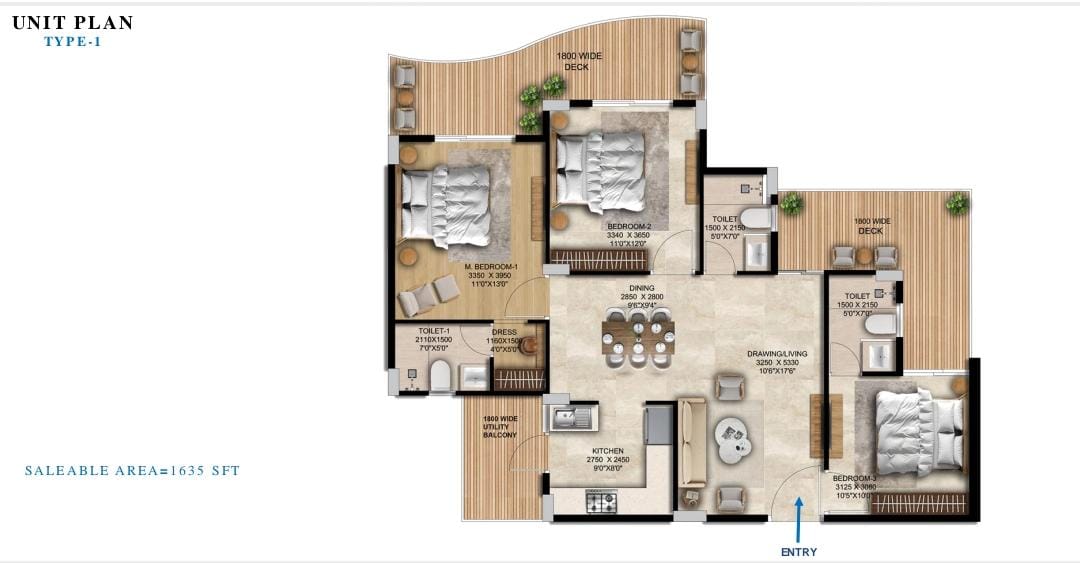 1635 Sq.ft. 3 Bedrooms 3 Bathrooms 2028 Possession