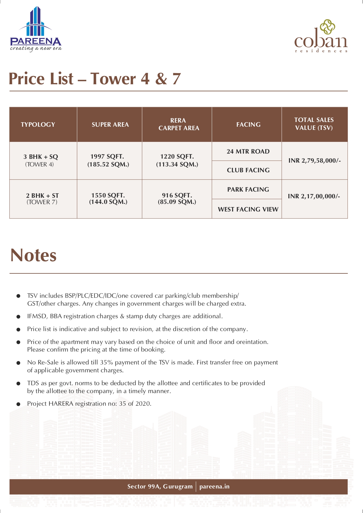 • Pareena Coban sectr 99a gurgaon justplancoin specifications